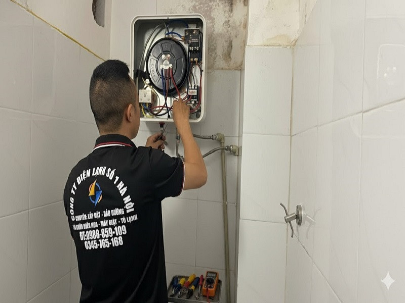 Kỹ thuật viên của dịch vụ sửa bình nóng lạnh tại hà nội thuộc Điện Lạnh Hà Nội Số 1 sẽ kiểm tra tổng thể, xác định chính xác nguyên nhân và sửa chữa theo đúng quy trình kỹ thuật.